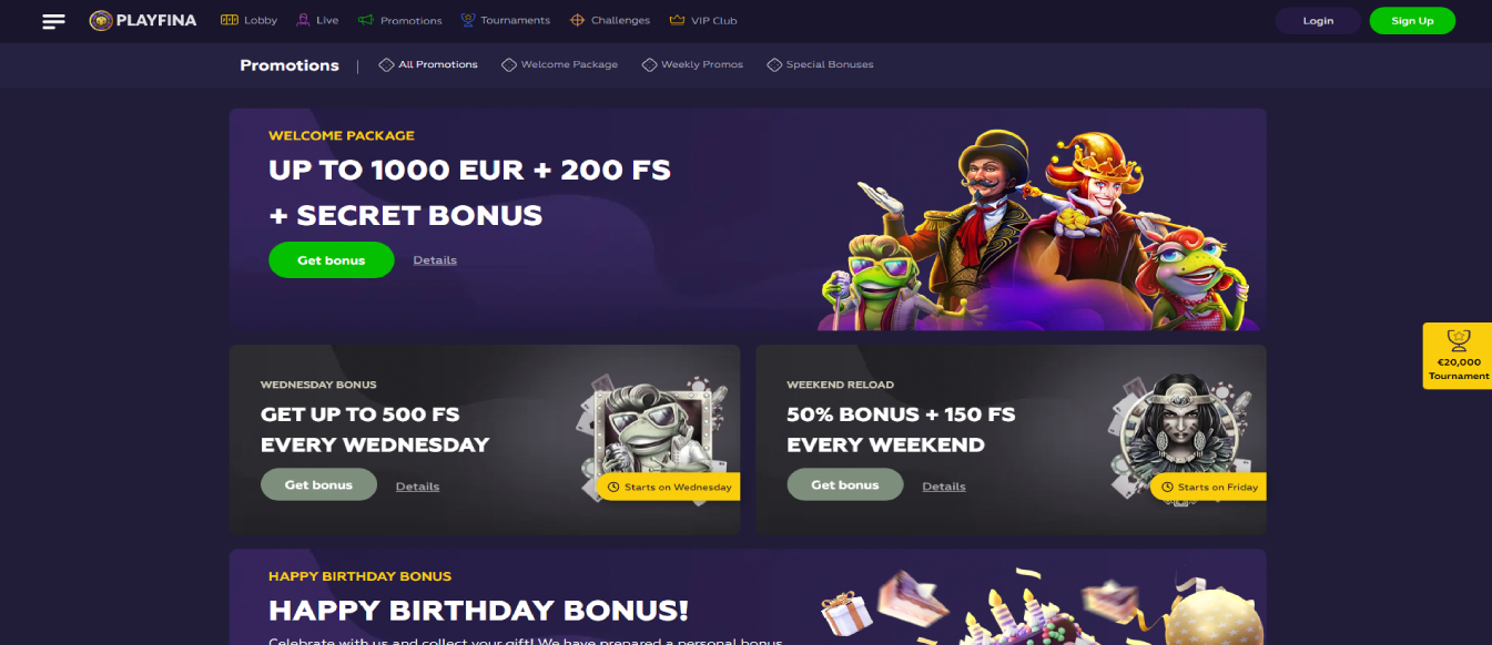 To start playing your favorite games at Playfina, you must create a personal account. After that, you can access all the site's functionality The Complete Guide to Easily Accessing Playfina Casino - Master Login Steps Revealed!! Playfina Casino Review - No Deposit, Free Spins And Best Playfina Casino How to Start Up to 1000€ + 200 FS + Secret Bonus!!! You instantly get presented with the casino's primary services and listed games, as well as its live casino section...